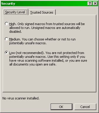 Set macro security 747d36h level option to “low”