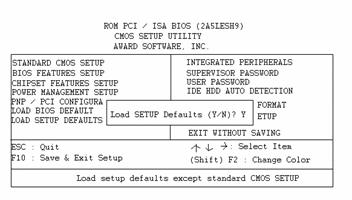 35 36 3-6 LOAD SETUP DEFAULTS The "LOAD SETUP DEFAULTS" function loads the system default data directly from ROM and initializes the associated hardware properly.