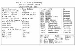 32 write to HDD command is executed again. Doze Mode The system hardware will drop down CPU clock from nomal working speed When Doze mode time-out occurs. Suspend Mode When the system suspend timer times out , the system will enter the suspend mode And the chipset will stop CPU clock immediately .The power consumption in Suspend Mode is lower than in standby mode. The screen is also blanked out. PMEvents: AWARD BIOS defines 7 PM Events in the power management mode (Doze & Suspend). The user can initialize any PM Events to be "Enable" or "Disable". When the system detects all of the enabled ebents do not habe any activity, It will start the system Doze timer first if the "Power Management" is not "Disabled". Once the system Doze timer is timed out , it will process doze power saving procedure by starting the system suspend timer. When the suspend timer times out , all of the CPU clock will stop by dropping system clock down tozero and remains this way until any one of the "Enabled "event occrrs.