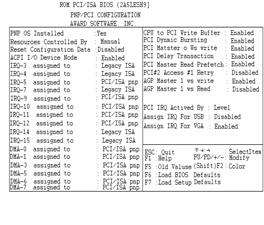 33 34 3-5 PNP / PCI CONFIGURATION The PNP /PCI configuration program is for the user to modify the PCI/ISA IRQ signals When various PCI/ISA cards are inserted in the PCI or ISA slots. WARNING :Any misplacing IRQ could cause system cant,t pick