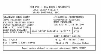 Read me first 1. The "LOAD SETUPD EFAULTS" function loads the system default data directly from ROM and initializes the associated hardware properly . This function is Necessary When you accept this mainboard ,