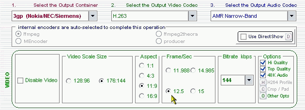 Q.002 I am using the 3gp Nokia/NEC/Siemens format with the AMR-NarrowBand. Can you force the