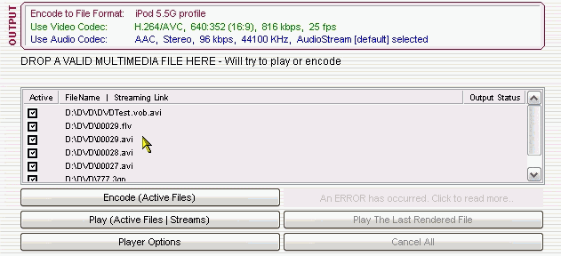 Q.006 I am encoding an input source AVI file sized 420x236 into MP4[H264/AVC]. An error is occurring. How can I