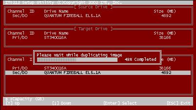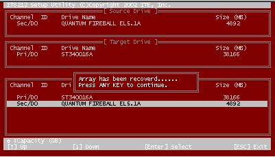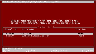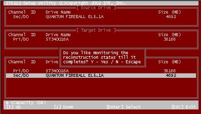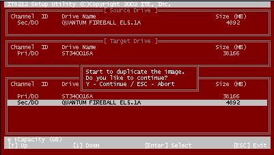You can use arrow keys ¡ô and ¡õ to highlight the source disk(s) then press the ¡§Enter¡¨ key to select the source disk(s). The following window will appear to make sure if you would like to continue.