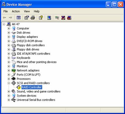 3. If there is a marking ! or ? before the RAIDExpress 133 ATA RAID Controller device as shown below, it indicates that the driver has not been correctly installed. Users should remove the device and reinstall.