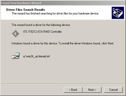 5. The driver for RAIDExpress 133 ATA RAID Controller is found. Press ¡§Next¡¨ to continue to setup.