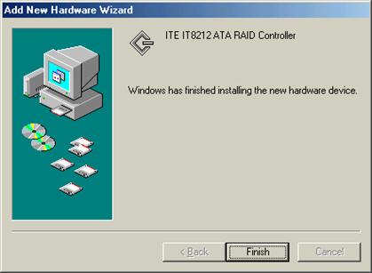 3. If there is a marking ! or ? in front of the RAIDExpress 133 ATA RAID Controller device, it indicates that the driver has not been correctly installed. Users should remove the device and reinstall. Windows 98SE/MEInstall the driver 1. Start Windows. 2.