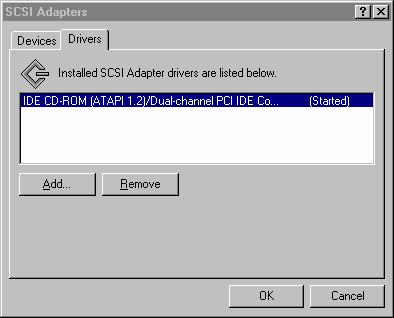 4. Choose the Drivers tab from the SCSI Adapters window then press ¡§Add¡¨ to continue.