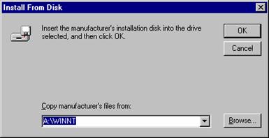 6. Insert the RAIDExpress 133 ATA Raid Controller Driver diskette into the floppy disk drive then type A:\WINNT on the field designating the file¡¦s location. Press ¡§OK¡¨ to continue to setup.