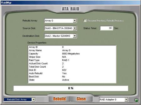 The following screen will appear if you choose to monitor the whole rebuild process.