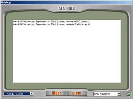 4. Records Activity Records Click the ¡§Start Menu¡¨ at the left bottom on the RAID Manager control panel then choose ¡§Activity Records¡¨ to show the activity records.