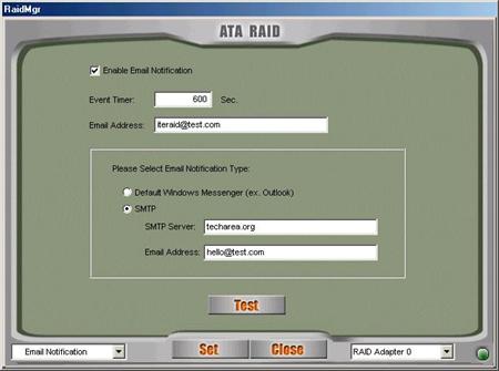 5. Options Email Notification Click the ¡§Start Menu¡¨ at the left bottom on the RAID Manager control panel then choose ¡§Email Notification¡¨ to modify the settings.
