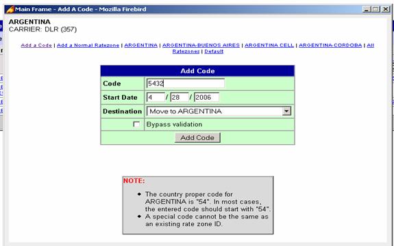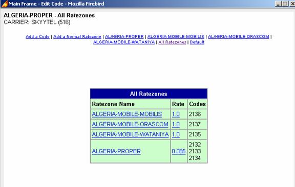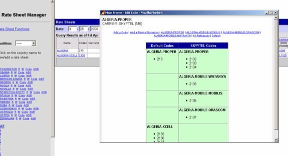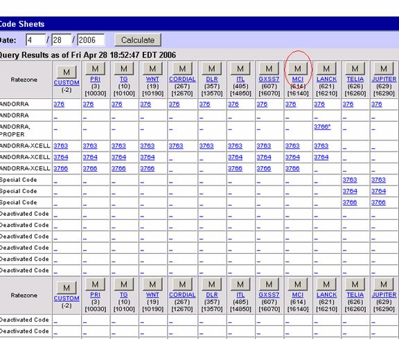 codes for that destination from the selected carrier. The destination and the