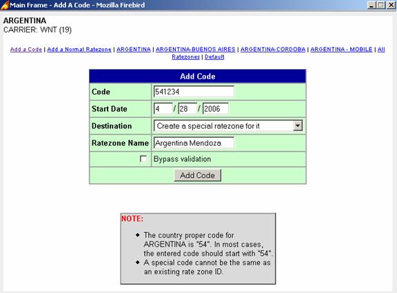 Entering a special code is the same as above with one difference. After you click on "Add a Code", you enter the code, the effective date, select "Create a special ratezone for it", and a field where you can enter the name of that special ratezone will appear. After entering the name of that ratezone, you hit "Add Code" button.