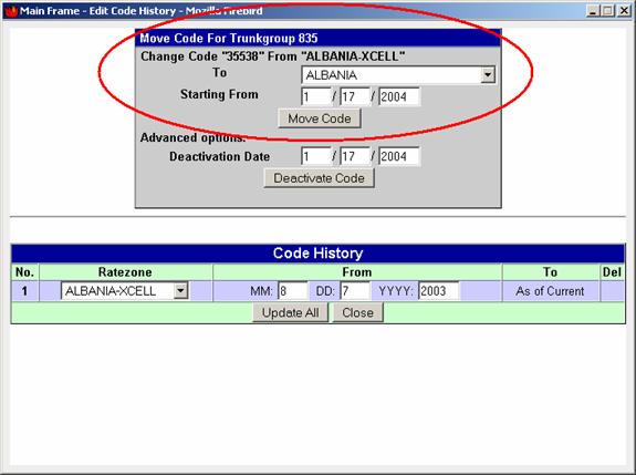 Ratezone: from this combo-box you can select the rate zone to which you want to move the code(s). This will be used only when moving codes or when activating codes.