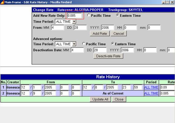 The rates/codes entering/modifying process is handled by the WS Pricing group within our Carrier Division team. But routing guys still need to understand how to operate with these tools as well. We might not enter rates for an entire carrier but we still need to update Arbinet every time we put a bid on the website and also we need to know how to maneuver codes for our Custom codes trunk group which is very helpful for the Country ownership.