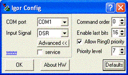 Don't see to its simplicity. Only plug it into the serial port of computer and execute Girder. In configuration of hardware plugins there is necessary to choose "IgorSFH-56 device" and set correct COM port.