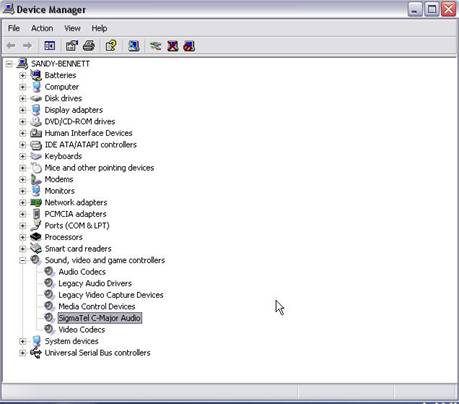 the option SigmaTel C-Major Audio