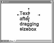 You cannot always use the sizebox handles to change the font size of the text itself. To change the font size, alignment, and other settings, use the Text tools described in the next section.