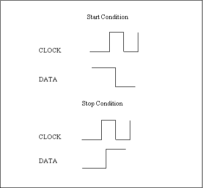 To enable the passing of data between the two devices a serial communication protocol is used. The protocol used here was developed by Philips and is called 12C T. The protocol defines if the operation is a 'read' or 'write' and which address it operates on. Normally data is read on the leading edge of the clock pulse and the most significant bit read first. Another condition of the protocol is that data does not change while the clock pulse is high. There are two exceptions to this rule, the 'start' signal and the 'end' signal. The start of a data transmission is signalled by changing the data line from high to low while the clock is high. This is read by the slave as 'start'. The 'end 'of a data transfer is signalled by changing the data line from low to high while the clock is high. The final part of the protocol is that the receiving device, whether that is the master or the slave, will acknowledge the receipt of information. The master and slave both acknowledge the successful receipt of data by pulling the data line low. After all control or data bytes an ACK should be issued unless not required for protocol reasons. For ease of explanation the ACKs will be omitted. The master ACK is issued during the read operations while Slave ACKs are issued during read and write operations.