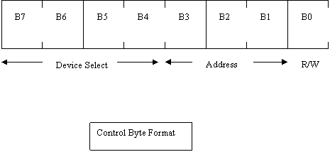 Bits B7 to B4 are used to select the device. For the 24FA256 the four bits of device select are 1010. The next three bits are used to select the address of the EEPROM that is being accessed. The final bit, B0, is the read/write bit. B0 is set to 1 for a read and 0 for a write.