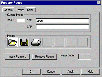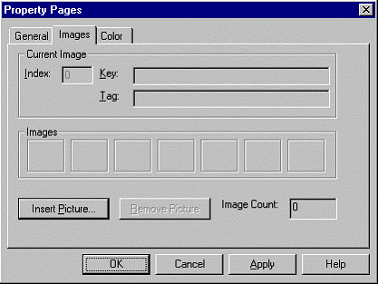 Click the Images tab to display the ImageList control's Property Pages, as shown in Figure 2.1.