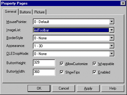 Right-click on the control using images from the ImageList control and click Properties to display the Property Pages dialog box