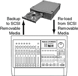 On other systems, to store your songs and free up space for new recordings, all you need to do is "backup" your recordings onto some form of removable media. Removable media types include Zip drives, Audio DAT, Magneto Optical drives, and even CD-R (Recordable CD). You can backup songs onto media for future use, or to free up disk space for more recordings.