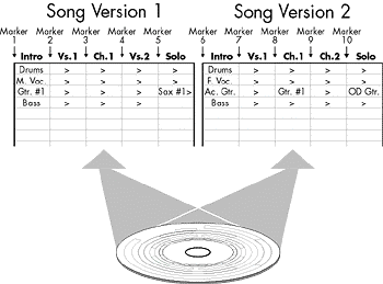 Using Pointer Based Editing in a Random Access System allows you to quickly and easily try different versions of your song.