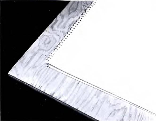 Drawing Board and Pad. Drawing paper generally comes in pads that are bound on one edge like a book. Most convenient is a spiral binding like the one you see here, since each page folds behind the others when you've finished a drawing. The pad won*t be stiff enough to give you proper support by itself, so get a wooden drawing board from your art-supply store-or buy a piece of plywood or fibcrboard. If you buy your drawing paper in sheets, rather than pads, buy a piece of soft fiberboard to which you can tack your paper.