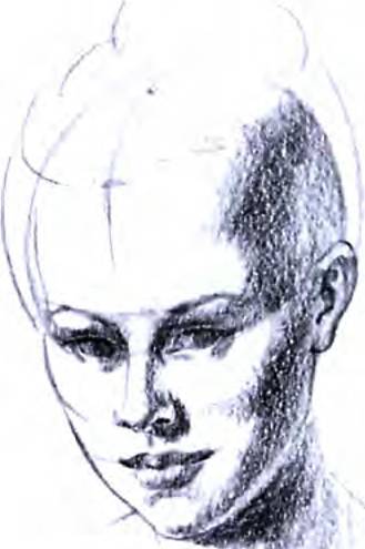 Form and Proportion. In the drawings of the great Renaissance masters, the complex form of the human head is often visualized very simply-as an egg shape with guidelines that wrap around the egg to define the placement of the features. In the first few pages of Portrait Drawing, you'll learn how to put this elementary diagram of the head to work, You'll learn to draw the egg shape in line and then make il three-dimensional by adding light and shade. You'll learn how to convert that "Renaissance egg" into a variety of male and female heads, seen from various angles: front view, side view, three-quarter view, and finally, a view of the head tilted downward. Its important to memorize this egg shape- and the placement of its guidelines-so that you can then adapt it, with subtle changes in proportion, to any head you may draw.