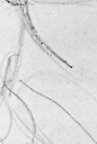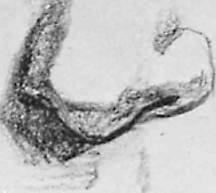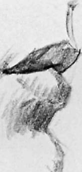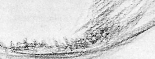 same thing on rough paper, which shaves away the granules of graphite more rapidly-like rough sandpaper-and builds up more ragged, irregular tones. Once again, the artist presses harder and moves his pencil back and forth several times for the dark tones, while he just skims the surface of the paper once or twice for the paler tones. He works with a thick, soft pencil-or a graphite stick in a holder.