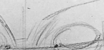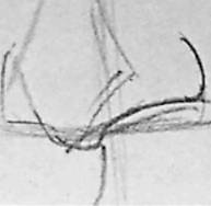 Step 2. Step 1 is a highly simplified version of the ear, of course. Now the artist goes back over these sketchy lines to define the shapes more precisely. He draws the intricate curves and angles over the guidelines-which he then erases.