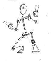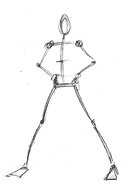 This is as complicated as you should get when making a stick figure...stay fast and loose. Make little circles to show where the joints and head are. Don't worry about fingers and toes. Just make a solid stick man. |