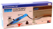 Aztek - 50205 Price: $350 The new AC500 is the perfect compressor for the person who uses their airbrush all day long. Specially designed for the person who airbrushes for a living, an artist or an avid modeler, the AC 500 delivers non-stop performance. The AC 500 has an automatic pressure on/off switch, which allows the unit to maintain an even constant pressure, thus eliminating irritating pulsing will spraying fine lines or small details. If you have been looking for a compressor that is both quiet and reliable, than the new AC 500 is the compressor for you. Features: - Pressure regulator with gauge - Auto pressure shut off - Airtank with water drain - 60 PSI (Max) - .6 CFM @ 20 PSI - 1/8 Horsepower - 1/4" NPT Airhose fitting - Oil-less operation - Fan cooled - 2 year warranty |