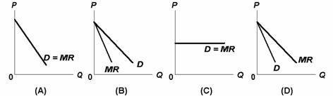 10.Which of the above diagrams correctly portray a non-discriminating pure monopolist's demand (D) and marginal revenue (MR) curves?