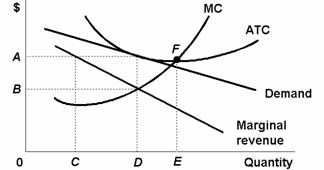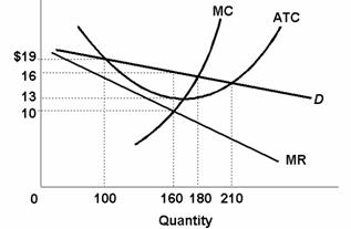 28. Refer to the above diagram for a monopolistically competitive firm. Long-run equilibrium price will be: