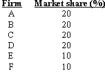 The four-firm concentration ratio for the above industry is: