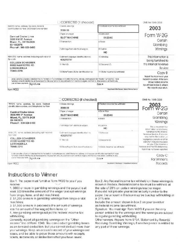 In the event that any of the information on the W-2G form is incorrect, the Guest may contact the information desk who will in turn beep the Head Cashier to research the situation and modify and reprint the form if necessary. Do not check the "CORRECTED" box. That is for forms previously sent to the IRS.