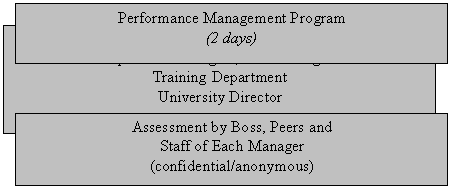 including multi-source (360 degree) feedback. The second phase emphasized skills development with attention being paid to a performance management combination of assessment data, individual action plans, career planning goals, and training programs. The third phase involved