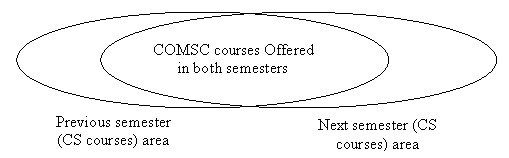 the both semester tables, and find all distinctive COURSES offered per department (not just comsc