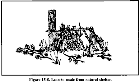 Construct this shelter in the same manner as for other environments; however, pile snow around the sides for insulation (Figure 15-5).