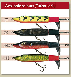 The best places to use the Turbo Jack are over shallows with lots of vegetation, not just near the bank but on off shore humps and reefs, the best locations will have varied depths from 0.5 - 4m. After making a long cast you retrieve at varying speeds so the Turbo Jack makes as much noise as possible, this is a good technique for river catfish as well. If you notice a predator following the lure just keep the retrieve going exactly as before and only set the hooks when you feel the fish through the rod.