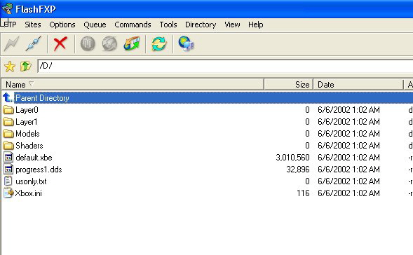 4. Wait until the green light is solid after you have inserted your game. Now, within FlashFXP, select the D/ drive, and you should see the contents of your original game.
