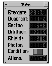 2)   17417h724r ;   17417h724r ; The end Stardate of your mission. You must destroy all alien vessels on or before the end Stardate. The Status Panel and Ship's Computer can inform you of the current Stardate, the time used so far, and the time left.