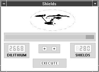 SHL Shields. This control allows you to raise and lower the Shields. You can set any amount of shield power up to the total Dilithium Level. Shields protect your ship from damage when you are fired upon by aliens. As long as the shields are up, you cannot be damaged while in battle. In order to raise the shields, you must have adequate Dilithium reserves.