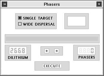 PHA Phaser Control. This control allows you fire a specified amount of Phaser power at one or more aliens. Like the Shields, Phaser power is taken directly from the Dilithium reserves. The aiming mechanism of the Phasers is controlled by the on-board computer. That is, they are automatically locked (and continuously track movements) of all alien ships in the immediate vicinity. You can fire at a single alien or at all aliens in the sector on each command.