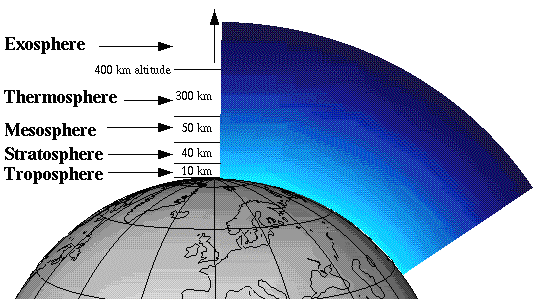 5) The atmosphere merges into space in the extremely thin exosphere. This is the upper limit of our atmosphere.