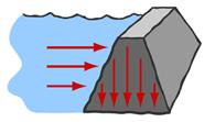 Water pushes against the gravity dam, but the heavy weight of the dam pushes