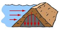 Water pushes against the embankment dam, but the heavy weight of the dam pushes